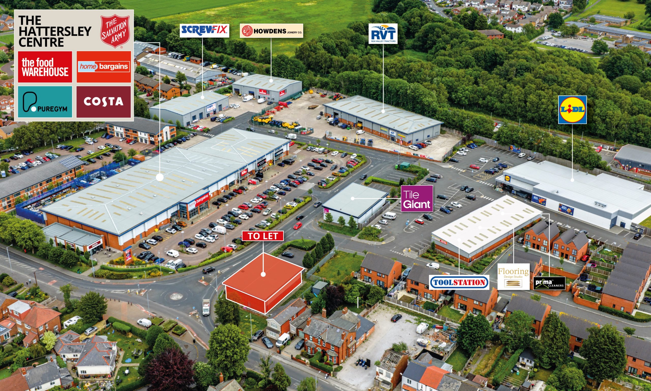The Centre offers retail and trade occupiers the opportunity to acquire modern units in a variety of sizes in this thriving market town. Home Bargains, The Food Warehouse, PureGym, Costa Coffee, Howdens, Screwfix, Tile Giant, Salvation Army and RVT are all currently trading from the Centre.